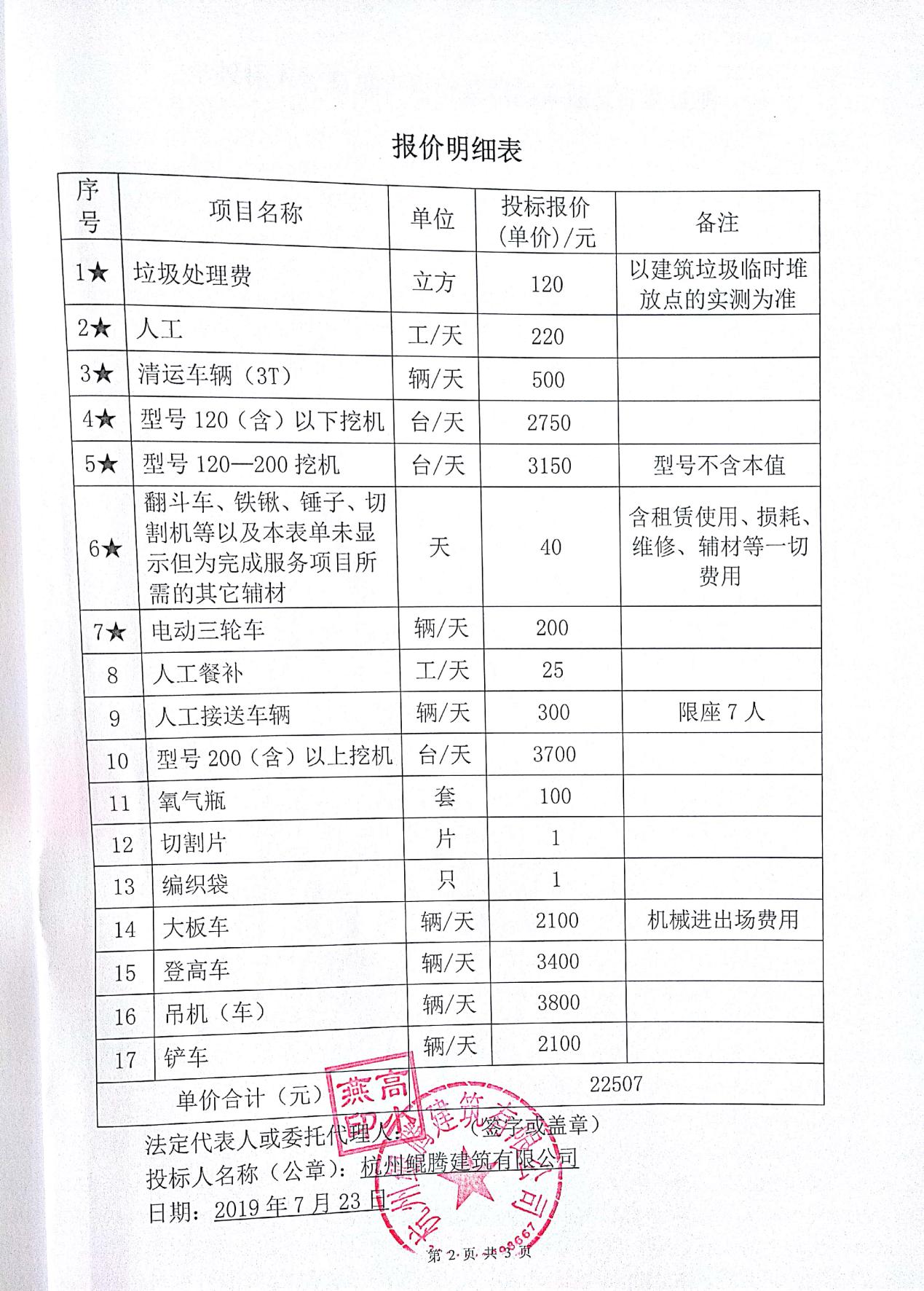 中标人:杭州鲲騰建築有限公司 中标單價合計(jì):22507元