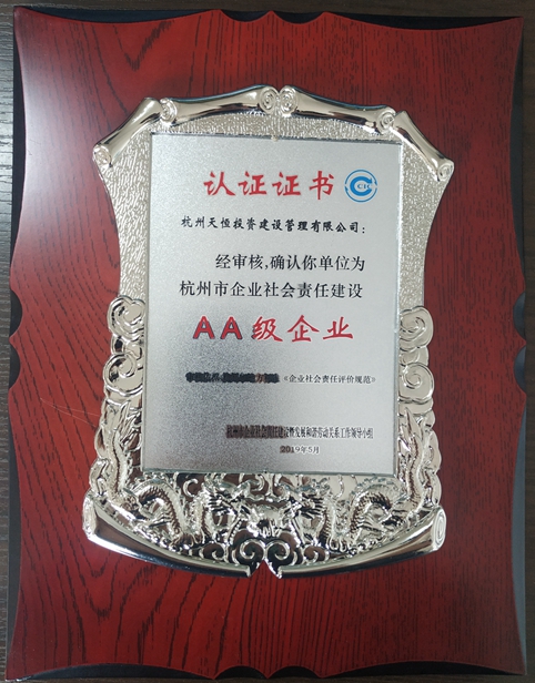 近日,杭州市企業社會(huì)責任建設暨發展和(hé)諧勞動關系工(gōng)作(zuò)領導小(xiǎo)組發布《關于認定杭州市企業社會(huì)責任建設暨發展和(hé)諧勞動關系先進單位的通報(bào)》(杭社和(hé)諧[2019]2号)文(wén)件,通報(bào)表彰了(le)一批社會(huì)責任建設先進企業,我公司繼2015年被評爲杭州市社會(huì)責任建設A級企業後,此次經複評考核,晉升爲AA級企業認證。