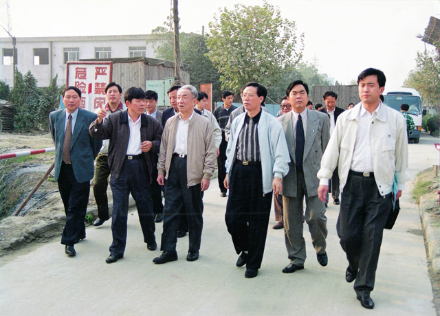 時(shí)任全國人大(dà)常委會(huì)副委員長鄒家華視(shì)察四堡污水(shuǐ)處理(lǐ)廠(chǎng)擴建工(gōng)程。